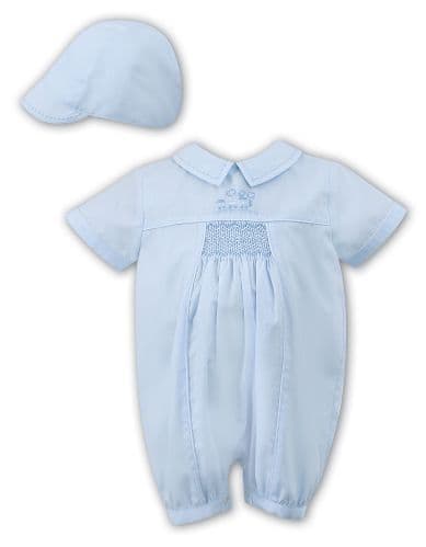 Sarah Louise blue train romper & cap